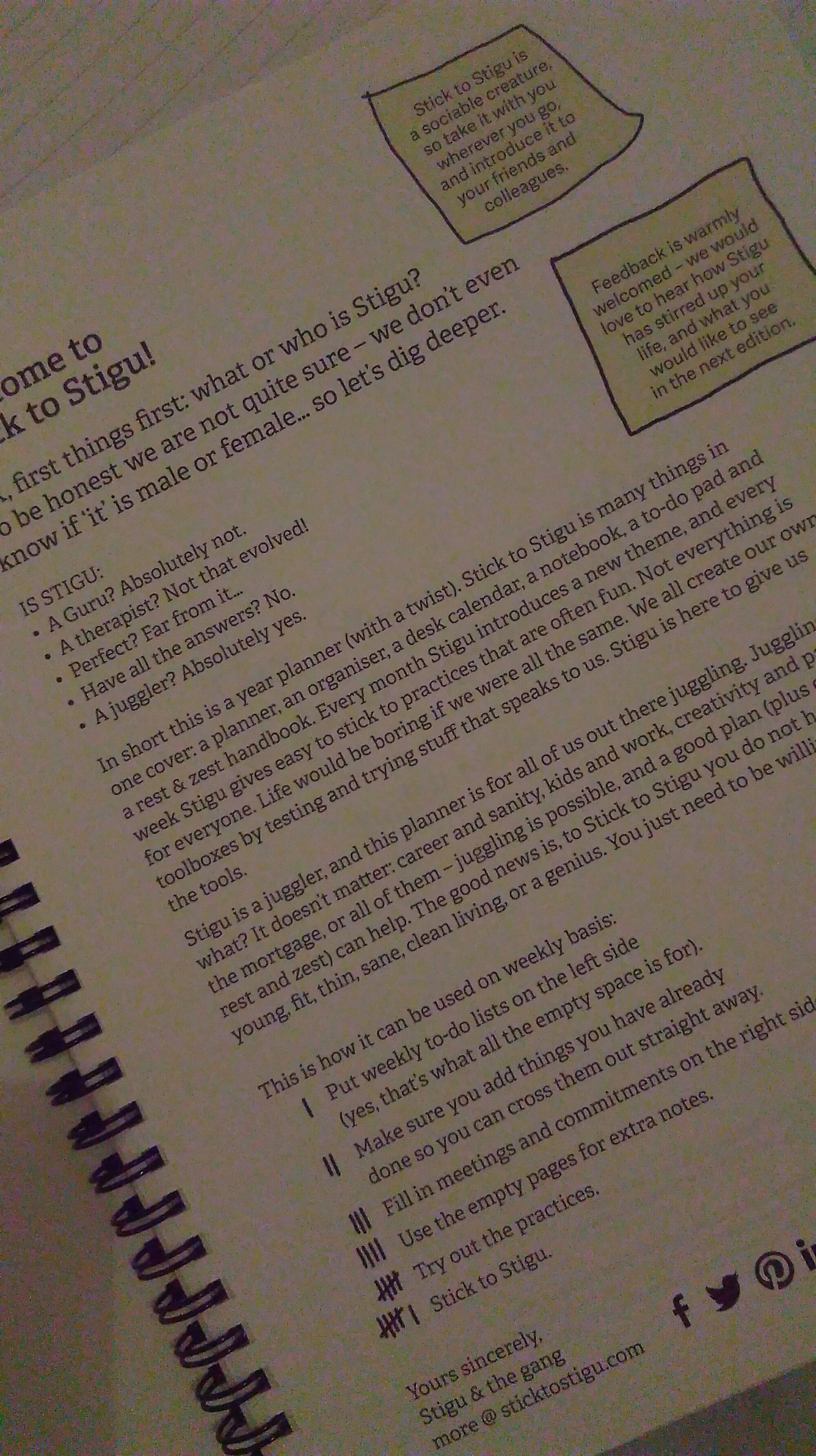 There’s a lovely introduction from the Stigu team in the front. Here we find out that ‘Stigu is a juggler, and this planner is for all of us out there juggling.’ Well, this was just my cup of tea!